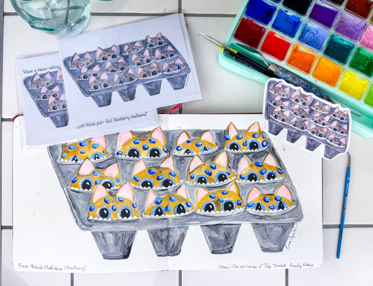 Blueberry Muffin Kitten Card | A6 Blank Greeting Stationery | The Kittie Sweets