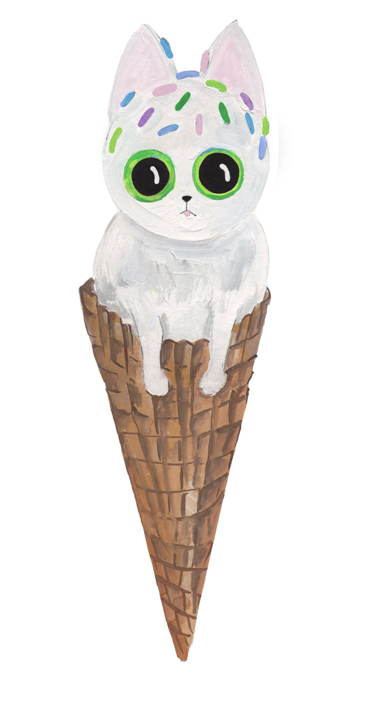 Ice Cream Cone Kitten Card | A6 Blank Greeting Stationery | The Kittie Sweets
